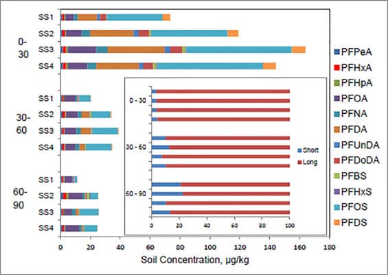 Description: The land application of digested sewage sludge (biosolids) is widely employed across the globe. Studies show that biosolids contain significant amounts of inorganic and organic materials, as well as emerging pollutants, including per- and polyfluorinated alkyl substances (PFAS). With the wide range of pollutants commonly reported in biosolids, the potential risks associated with long-term land application operations are concerning. In this study, PFAS in surface soils, deeper soils into the vadose zone, and immediately-underlying groundwater was measured at an agricultural station with a long record of biosolids applications plus irrigation using treated wastewater. Twelve PFAS homologues were detected in every near surface soil sampled 0-30 cm depth below ground surface with multiple PFAS (especially short-chain) distributed through the soil profile. Average measured concentrations of PFAS in these soils suggest the soil burden PFOS>PFDA>PFOA for all substations sampled, independent of the historical loading rates and patterns of agricultural operations on those substations. Measured concentrations of PFOA and PFOS in the soil profile (0-90 cm) suggest these compounds have migrated to deeper soil depths (up to 9 m below the surface) with quantifiable concentrations in the soil and the immediate underlying groundwater located approximately 17 m below. Estimates of the total mass of PFAS in surface soils were effectively made using PFAS levels reported in sludges from the USEPA NSSS combined with long-term loading rates on record at the substations. With the land application of biosolids in the USA regulated by the US EPA, additional and updated risk assessments and surveys to include emerging pollutants such as PFAS are needed to protect public health and the environment.