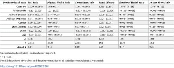 Description: Objectives: To quantify the effect of politics on the physical, psychological, and social health of American adults during the four-year span of the Trump administration.