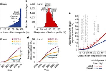 Author: Trisos, Christopher H.; Merow, Cory; Pigot, Alex L. Description: As anthropogenic climate change continues the risks to biodiversity will increase over time, with future projections indicating that a potentially catastrophic loss of global biodiversity is on the horizon. However, our understanding of when and how abruptly this climate-driven disruption of biodiversity will occur is limited because biodiversity forecasts typically focus on individual snapshots of the future. Here we use annual projections (from 1850 to 2100) of temperature and precipitation across the ranges of more than 30,000 marine and terrestrial…